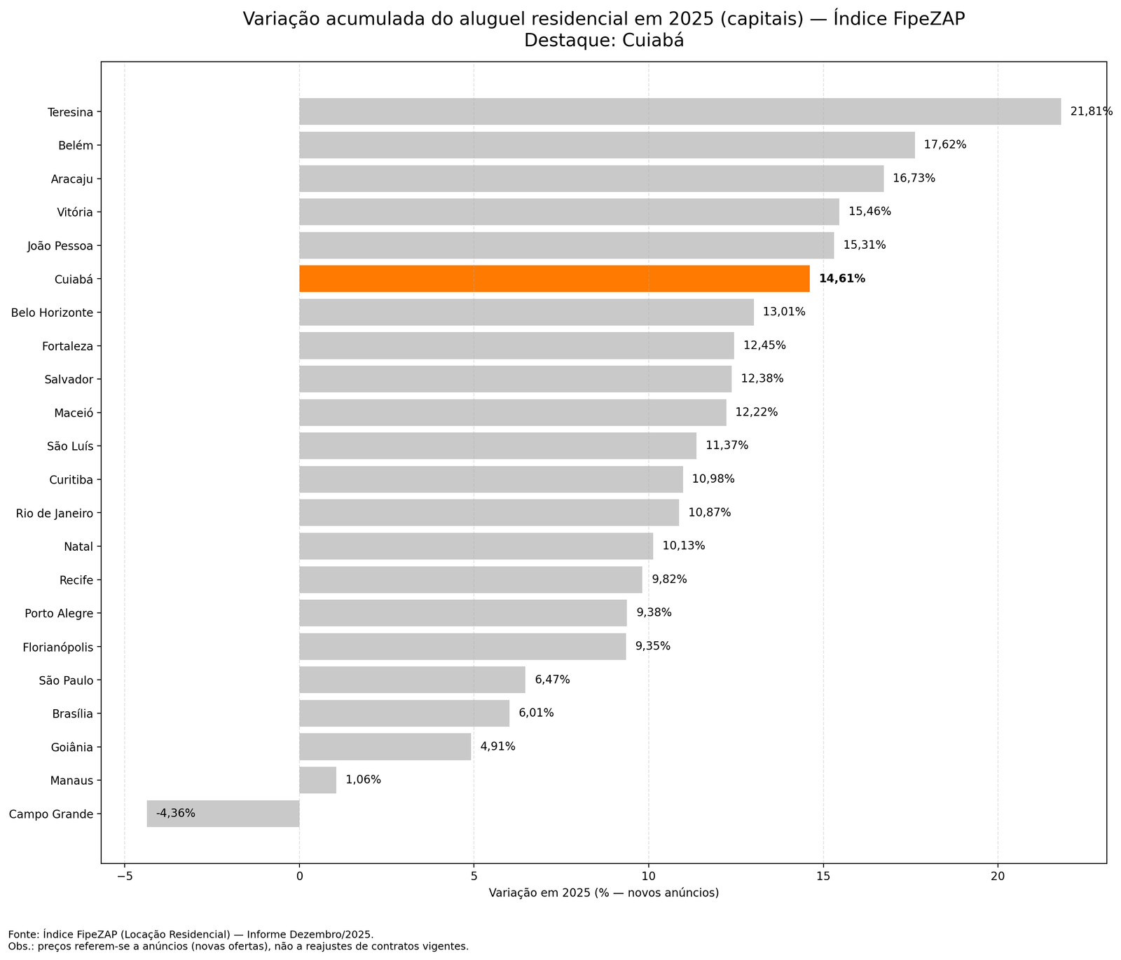 | 1 | Teresina | +21,81% |